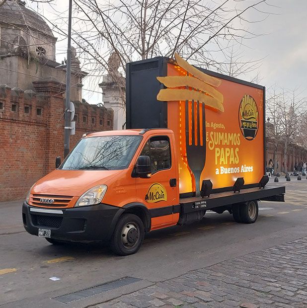 Y lo mejor de todo es que como parte de su campaña realizaron un impactante proyecto especial en nuestra Valla Móvil, interviniéndola con un troquel 2D adelantado con luz difusa detrás y máquina de humo simulando las papas recién salidas de la freidora. La llamativa valla recorrió lugares emblemáticos de CABA con alto tráfico peatonal.